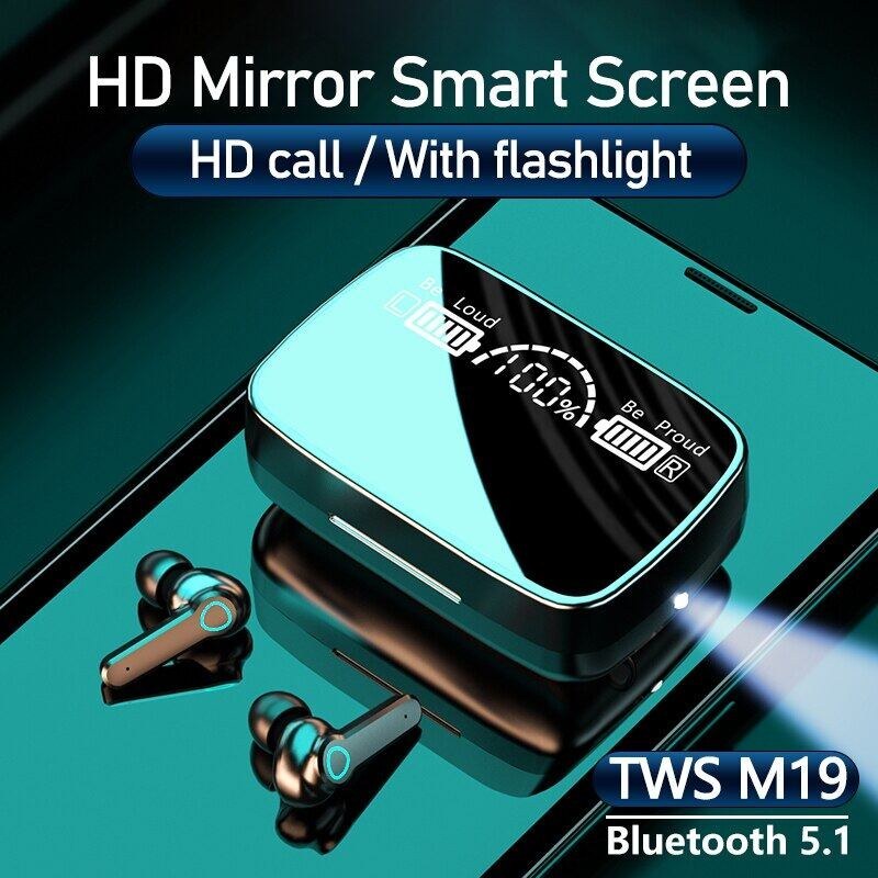 هندزفری بلوتوثی نسل جدید M19 علاوه بر ظاهر زیبا وجذاب اندازه کوچکتر وسبک تری دارد همچنین این محصول از بلوتوث نسل پنجم بهره می برد که مکالمه ای با کیفیت تر ودل نشین تر در اختیار استفاده کنندگان این محصول قرار داده و سرعت اتصال بالایی دارد.به علاوه این مدل دارای فناوری TWS می باشد فناوری استریو واقعی کیفیت مطلوبی در اختیار علاقه مندان به شنیدن موسیقی با کیفت و دوست داران بازی های یارانه ای قرار میدهد.علاوه بر این این هندزفری با باطری پاوربانک 3500Ma سرعت بالایی در شارژ گوشی ها داشته و همچنین می توانید از آن به عنوان یک پاوربانک با قدرت برای شارژ گوشی خود استفاده کنید.ظاهر زیبا و جذاب این دستگاه بسیار چشم نواز می باشد.شما می توانید با مشاهده صفحه LED زیبای آن از مقدار شارژ پاوربانک و گوشی های هندزفری خود مطلع شوید.همچنین گوشی های کوچک و بسیار سبک این مدل کاملا لمسی است و میتوان با لمس آن گوشی ها را خاموش و یا روشن نمود همچنین میتوان به راحتی با لمس گوشی ها می توان وصل وقطع مکالمه و یا شروع و توقف موسیقی را کنترل نمود و حتی به راحتی با دوبار لمس هر طرف موسیقی قبل یا بعد را پخش کرد.همچنین این هندزفری کاربردی دارای یک چراغ قوه است که علاوه بر هزینه کم این دستگاه قابلیت های زیادی در اختیار شما می گذارد.