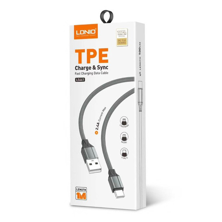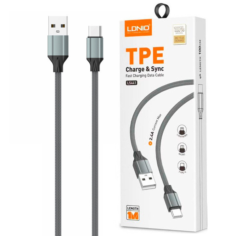 کابل تایپ سی فست شارژ 2.4 آمپر الدینیو LS441 طول 1 متر (اورجینال)