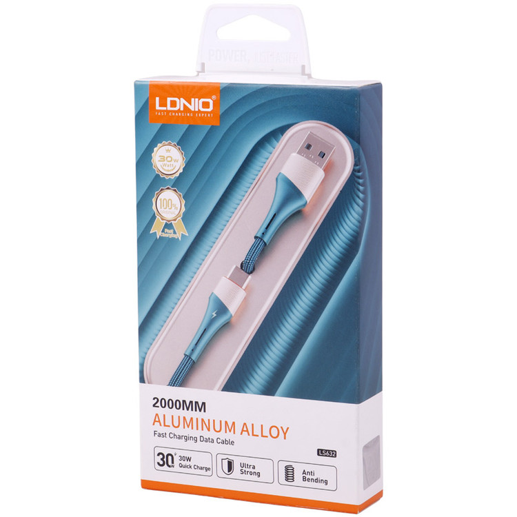 کابل یو اس بی به لایتنینگ LDNIO LS632 بسیار با کیفیت بوده و دارای قابلیت شارژ سریع(30w) می باشند.همچنین جنس این کابل با روکش پلاستیک بوده و در مقابل پارگی و خم شدگی مقاوم است.