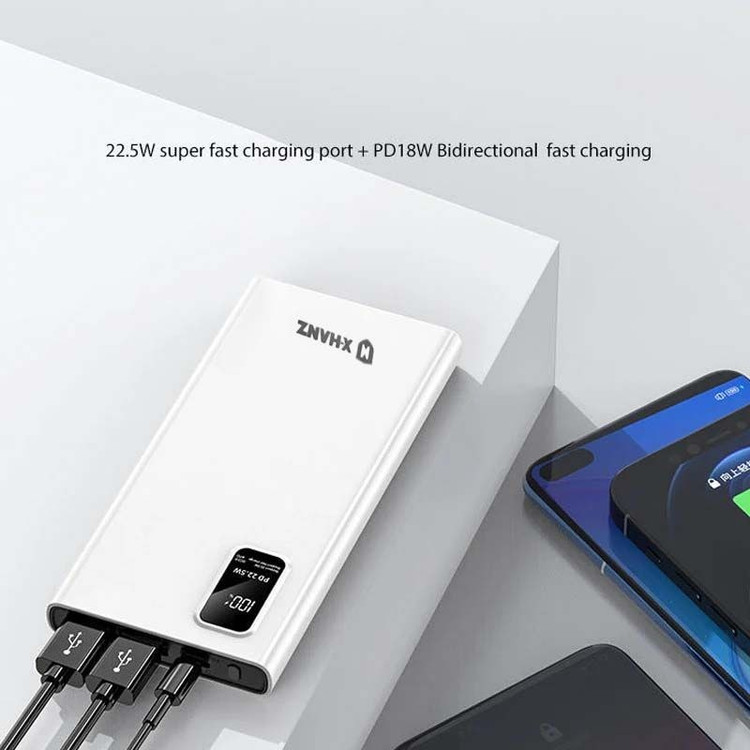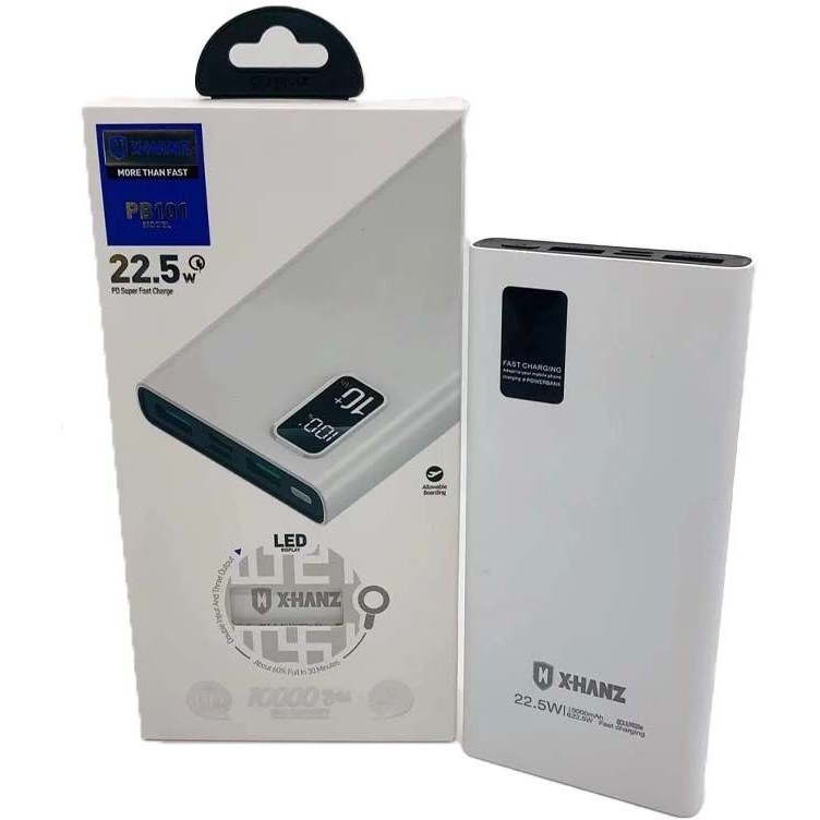 پاوربانک اورجینال ایکس هانز مدل X-HANZ PB101 با ظرفیت باتری لیتیومی 10000 میلی آمپرساعتی و پشتیباتی از فناوری شارژ سریع 22/5 وات با پورت PD و با صفحه نمایش LED که میزان درصد شارژ پاوربانک را نشان میدهد به بازار عرضه شده است. با استفاده از این پاوربانکHD-PB101 میتوانید انواع گوشیهای هوشمند، تبلتها و دستگاههای دیجیتال را با سرعت بالا شارژ نمایید. طراحی مدرن، بدنهی مقاوم، قابلیت شارژ همزمان 3 دستگاه الکترونیکی، ظاهر حرفهای و جذاب از دیگر قابلیتها و امکانات این شارژ همراه ۲۲/۵ واتی می باشد.