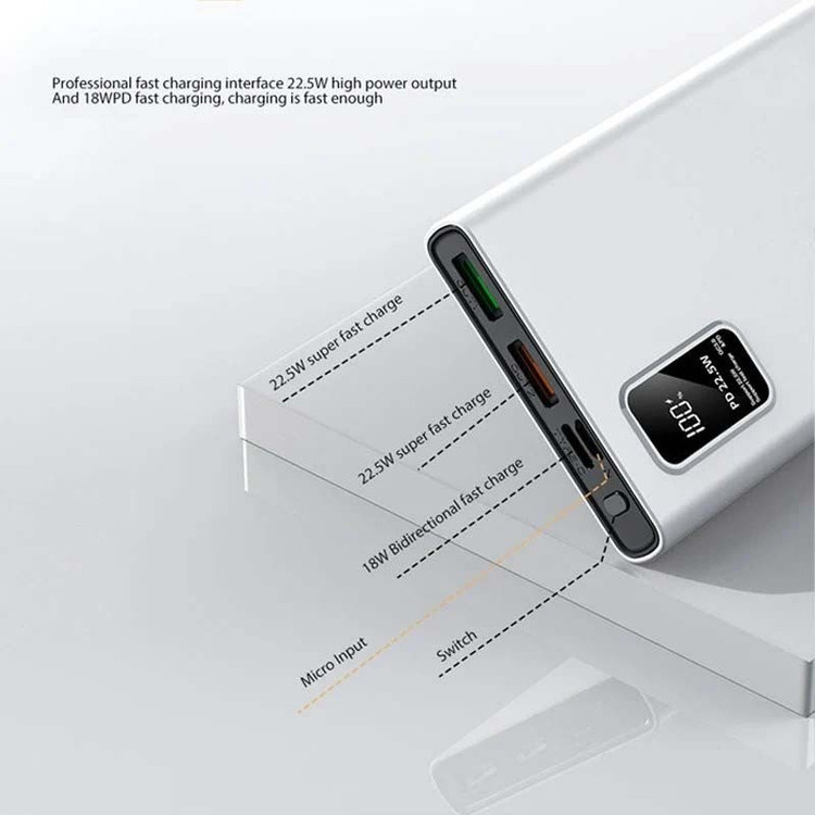 نمایشگر led درصد شارژ، پشتیبانی از شارژ سریع، درگاه شارژ PD، دارای 2 درگاه شارژ USB