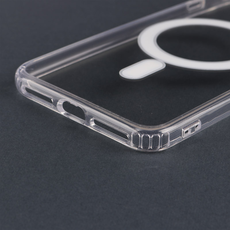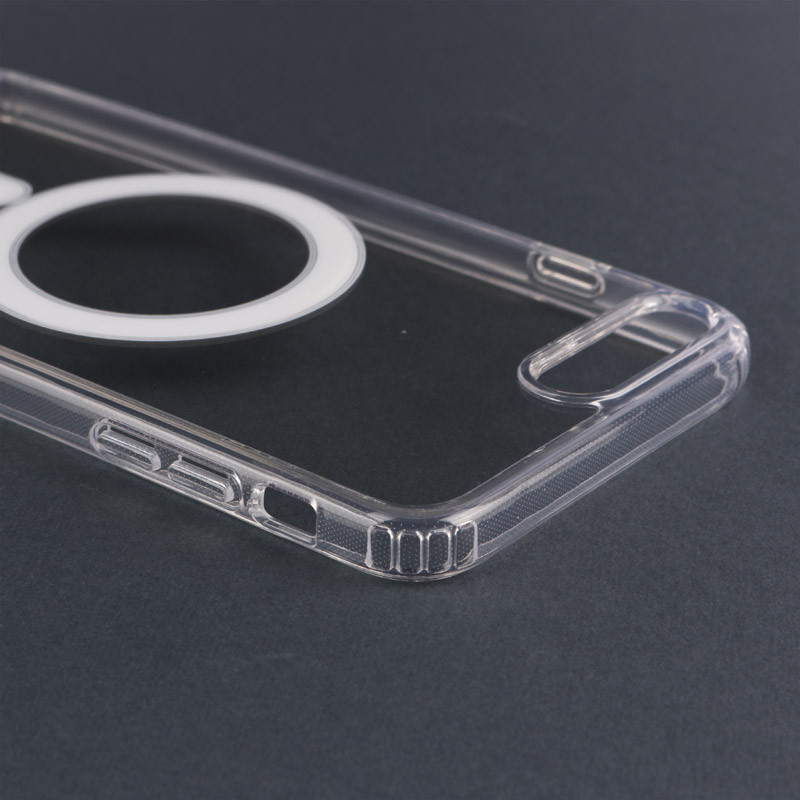 قاب ضد ضربه مگ سیف Clear Case Magnetic ضمن محافظت از تلفن همراه، سازگار با شارژر MagSafe نیز بوده و کاربر را برای استفاده از این نوع شارژر با مشکل عدم اتصال آهن ربا روبه رو نخواهد کرد. طراحی شفاف این قاب سبب شده ظاهر اصلی گوشی حفظ شده و تنها در برابر صدمات احتمالی و خط و خش از گوشی شما محافظت شود. لازم به ذکر است محل قرارگیری پورت ها و دوربین در این قاب به خوبی برش خورده است تا در مواقع نیاز به آسانی به آنها دسترسی داشته باشید.