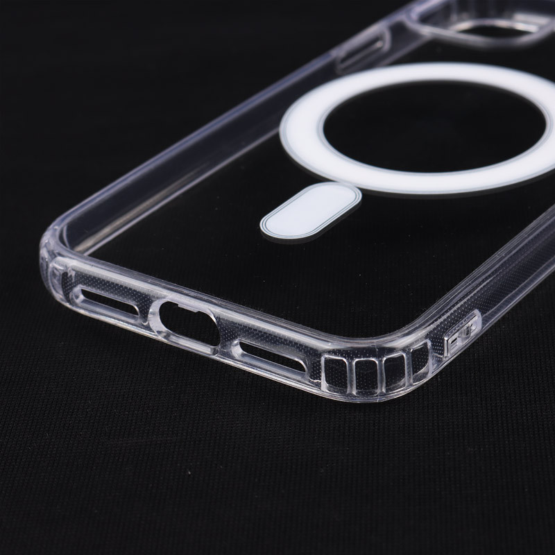 مگ سیف را می توان نسل جدید شارژرهای اپل برشمرد که مبتنی بر نیروی مغناطیسی فعالیت کرده و سرعت و امنیت را در کنار هم برای کاربر به ارمغان می آورد. این شارژر وایرلس به آهن ربای تعبیه شده در قسمت پشتی گوشی متصل شده و با توان مطلوبی به شارژ تلفن همراه کاربر می پردازد. بهره گیری از این تکنولوژی جدید و نوپا مستلزم استفاده از لوازم جانبی های مناسب خود نیز است. کمپانی های مختلف با در نظر گرفتن این نیاز دست به تولید گاردهایی زده اند که قابلیت پشتیبانی از این نوع شارژر را دارند. قاب ضد ضربه Clear Case Magnetic ضمن محافظت از تلفن همراه، سازگار با شارژر MagSafe نیز بوده و کاربر را برای استفاده از این نوع شارژر با مشکل عدم اتصال آهن ربا روبه رو نخواهد کرد. طراحی شفاف این قاب سبب شده ظاهر اصلی گوشی حفظ شده و تنها در برابر صدمات احتمالی و خط و خش از گوشی شما محافظت شود. لازم به ذکر است محل قرارگیری پورت ها و دوربین در این قاب به خوبی برش خورده است تا در مواقع نیاز به آسانی به آنها دسترسی داشته باشید.