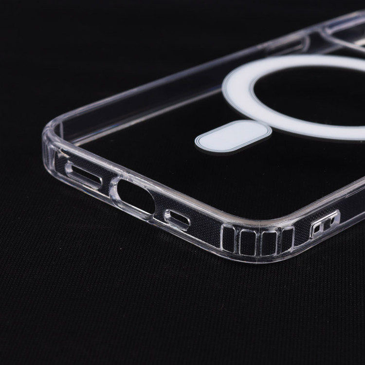 مگ سیف را می توان نسل جدید شارژرهای اپل برشمرد که مبتنی بر نیروی مغناطیسی فعالیت کرده و سرعت و امنیت را در کنار هم برای کاربر به ارمغان می آورد. این شارژر وایرلس به آهن ربای تعبیه شده در قسمت پشتی گوشی متصل شده و با توان مطلوبی به شارژ تلفن همراه کاربر می پردازد. بهره گیری از این تکنولوژی جدید و نوپا مستلزم استفاده از لوازم جانبی های مناسب خود نیز است. کمپانی های مختلف با در نظر گرفتن این نیاز دست به تولید گاردهایی زده اند که قابلیت پشتیبانی از این نوع شارژر را دارند. قاب ضد ضربه Clear Case Magnetic ضمن محافظت از تلفن همراه، سازگار با شارژر MagSafe نیز بوده و کاربر را برای استفاده از این نوع شارژر با مشکل عدم اتصال آهن ربا روبه رو نخواهد کرد. طراحی شفاف این قاب سبب شده ظاهر اصلی گوشی حفظ شده و تنها در برابر صدمات احتمالی و خط و خش از گوشی شما محافظت شود. لازم به ذکر است محل قرارگیری پورت ها و دوربین در این قاب به خوبی برش خورده است تا در مواقع نیاز به آسانی به آنها دسترسی داشته باشید.